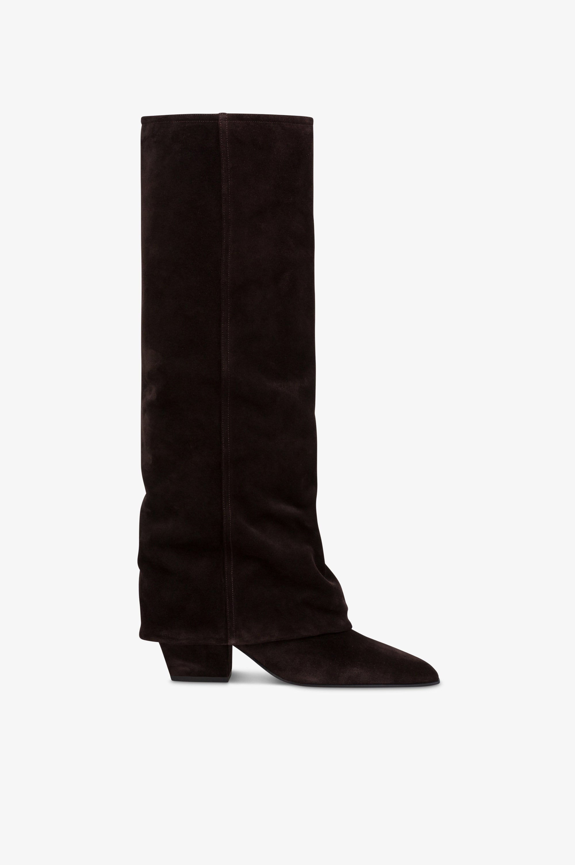 Fold-over boots in ebony calf suede leather.